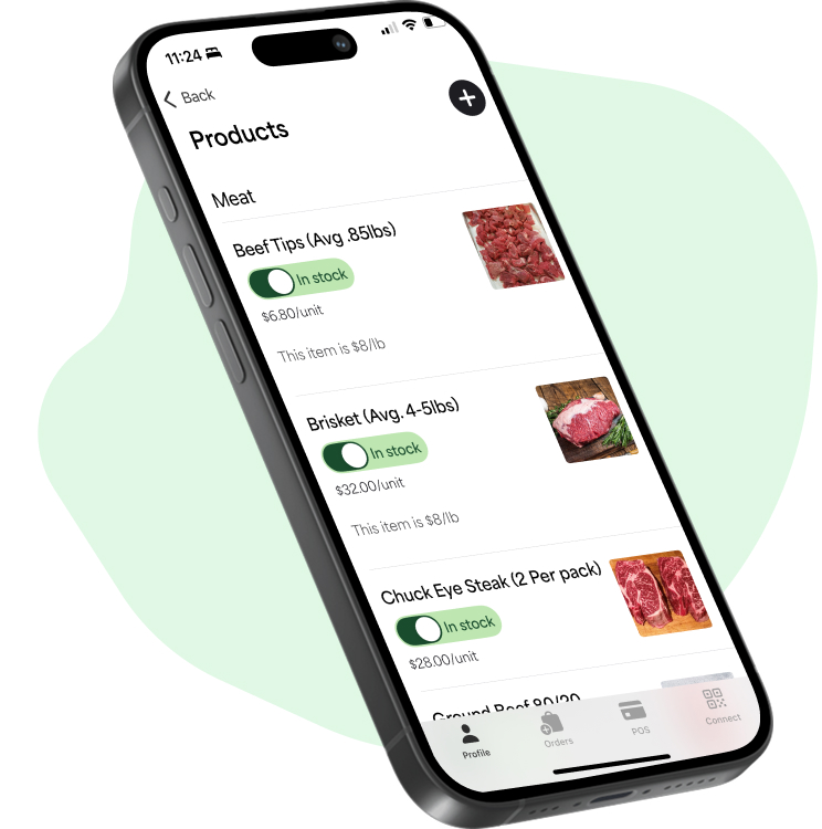 List your products quickly and easily—produce, meats, eggs, dairy, honey, flowers, plants, baked goods, and more. Update inventory or pricing anytime from the app. Everything syncs instantly across your online storefront and marketplace listings, so customers always see what’s in stock.